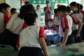 志愿者们带领小学生们进入了光的的世界,通过各种实验讲述了有趣的光、光的形态、光的颜色和光的折射,让小学生们亲眼目睹和亲身体验了光的世界。志愿者们与小学生们积极互动交流,激发了同学们的好奇心和想象力,增强了他们对物理知识的学习热情。