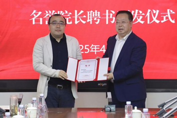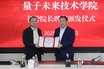 刘宗明为张强颁发山东省量子未来技术学院名誉院长聘书,为周飞颁发兼职副院长聘书。