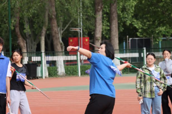 教师组赛事同样精彩纷呈。李淑娟老师在女子老年组60米托球跑中稳健发挥,摘得亚军;谷青老师在女子青年组标枪比赛中奋力一掷,荣获第五名。杨中娟老师更是强势夺魁,斩获女子中年组标枪冠军;张清悦老师获得女子中年组跳远第四名,李飞、侯永刚老师分别在男子青年组铅球、定点投篮决赛中取得第四、第五名的佳绩。老师们以拼搏姿态为学生树立了勇于挑战的榜样 。