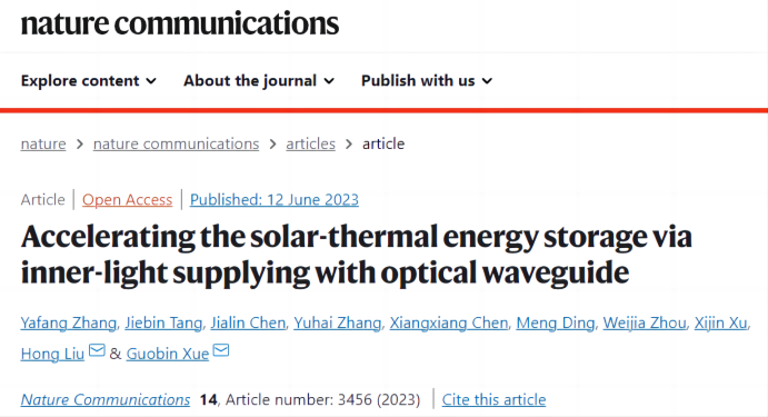 教师张亚芳、薛国斌等人在光波导内通光加速太阳能相变蓄热研究方面取得进展,相关成果“Accelerating the solar-thermal energy storage via inner-light supplying with optical waveguide”发表在6月份的nature communications杂志上,青年教师张亚芳博士为第一作者,薛国斌、刘宏教授为通讯作者,91官网
