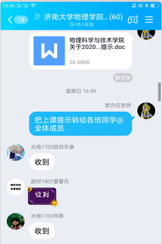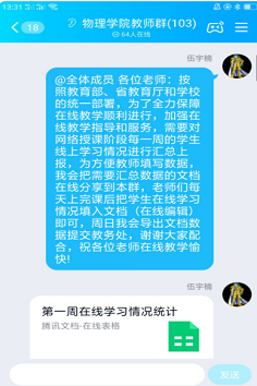 教学管理人员也是全力以赴地做好各项工作。为了有效提升教师在线教学能力,教办主任伍宇楠老师全力提供线上教学培训、技术解答、协调服务等保障工作。伍老师深入了解教师的培训效果和在线教学实际需求,积极联系传达学校的各类在线教学平台提供技术支持,组织学院老师们加入“雨课堂培训”微信和QQ群、“超星学习通”QQ群、“钉钉在线教学”群等多个在线培训群,配合学院技术人员做好在线教学咨询指导和教师相互间的经验交流工作。为保障在线课程的授课质量,伍老师积极协调、主动服务相关老师更新完善视频、习题等学习资料。他每日几乎是全天在线,及时分享在线教学的学习资料、文件,协调各平台及时解决教师的问题。