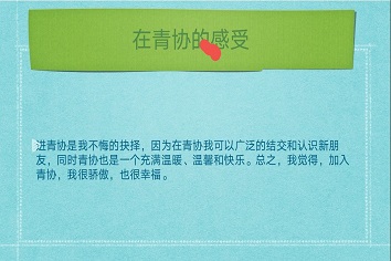 在过去的一年中,每位志愿者干事都奉献出了属于自己的一份力量,铭记“团结、友爱、互助、奉献”的志愿服务精神。志愿活动是微小的也是伟大的,每个志愿者都在社会志愿活动之中,帮助他人,提升自己,从助人为乐之中获得了对自己的提升。(已修改,建议审核)