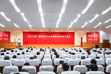 交流会首先由学院院长徐锡金致辞,他指出,考研是青年人成才的重要路径,学历和学位是青年人的敲门砖。现代大学的基本职能主要包括人才培养、科学研究、社会服务、文化传承创新和国际交流合作。其中首要职能和本质职能就是人才培养,只有培养了一大批的优秀人才,大学的办学才是成功的。他勉励同学们规划自我、志存高远,知行合一、夯实学识,锚定目标、勇往直前,打开通往继续深造之门,通过读研走向更高的平台。他强调,同学们更应该通过读研探索物理奥秘,推进国家科技发展,志存当高远,激发奋进潜力。