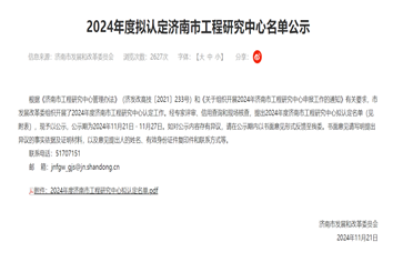 近日,济南市发展和改革委员会公布2024年度拟认定济南市工程研究中心名单,91官网